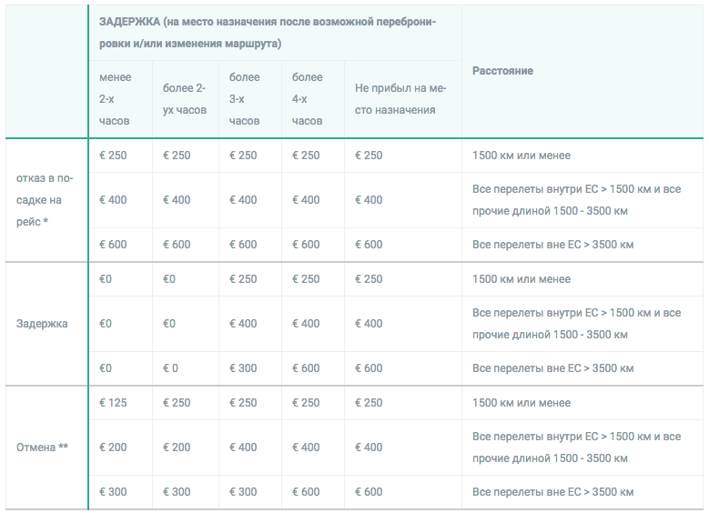 Только в случае нехватки мест. Пассажиру выплатят двойную стоимость билета в одну сторону, если он прилетел на два часа позже ранее забронированного рейса. В этом случае компания выплатит максимум 650 долларов. Если время задержки составило больше двух часов, то от перевозчика можно потребовать возмещения четырехкратной стоимости билета от 1 до 300 долларов.