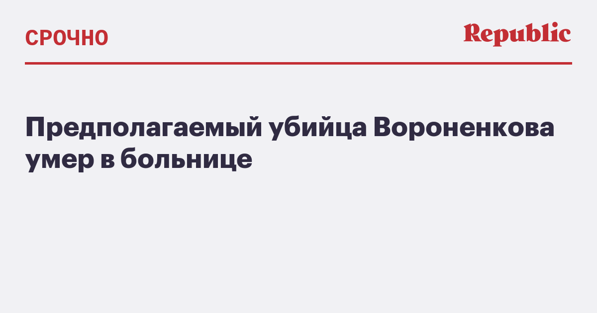 Мужчина, предположительно застреливший бывшего депутата Госдумы Дениса Вороненкова в центре Киева, скончался в больнице. Об этом сообщают «Вести-Украина».