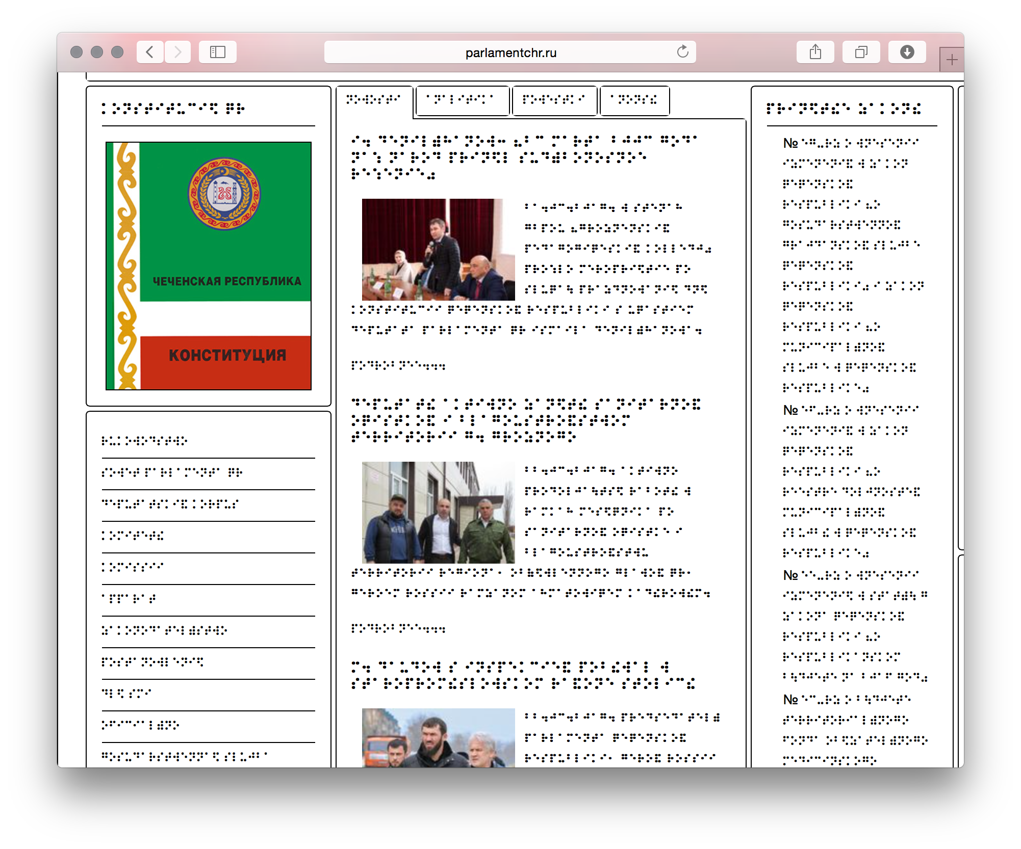 На сайте чеченского парламента нашли версию со шрифтом Брайля. На следующий день ее убрали