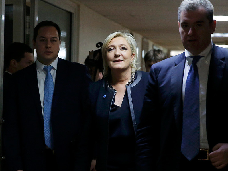 Лидер партии "Национальный фронт", кандидат в президенты Франции прибыла в Москву по приглашению комитета Госдумы по международным делам и в ходе встречи с российскими депутатами призвала Россию и Францию объединиться, чтобы спасать мир от глобализации и исламского фундаментализма. Она заверила, что ее позиция по Украине совпадает с мнением Кремля и пообещала отменить антироссийские санкции, если станет президентом.