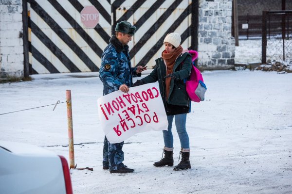 Возле исправительной колонии № 7 в Сегеже 4 ноября прошли одиночные пикеты активистов из Петербурга против пыток. Восемь человек были задержаны, в том числе фотограф Анастасия Андреева, единственная, кого в результате оставили в отделе полиции на ночь.