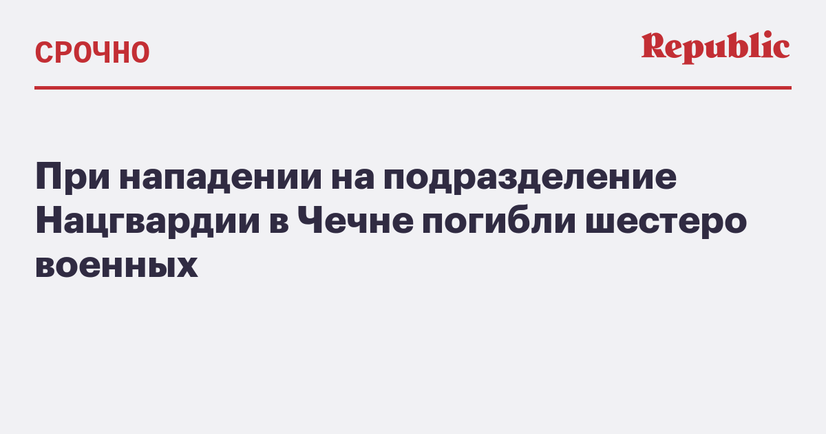 В результате нападения на подразделение Нацгвардии в Чечне погибли шестеро военных, сообщается на сайте военного ведомства.
