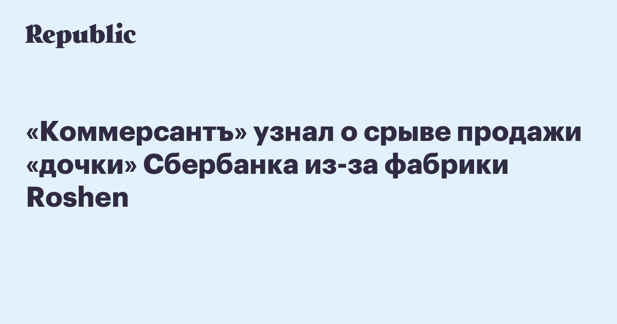 «Коммерсантъ» узнал о срыве продажи «дочки» Сбербанка из-за фабрики Roshen