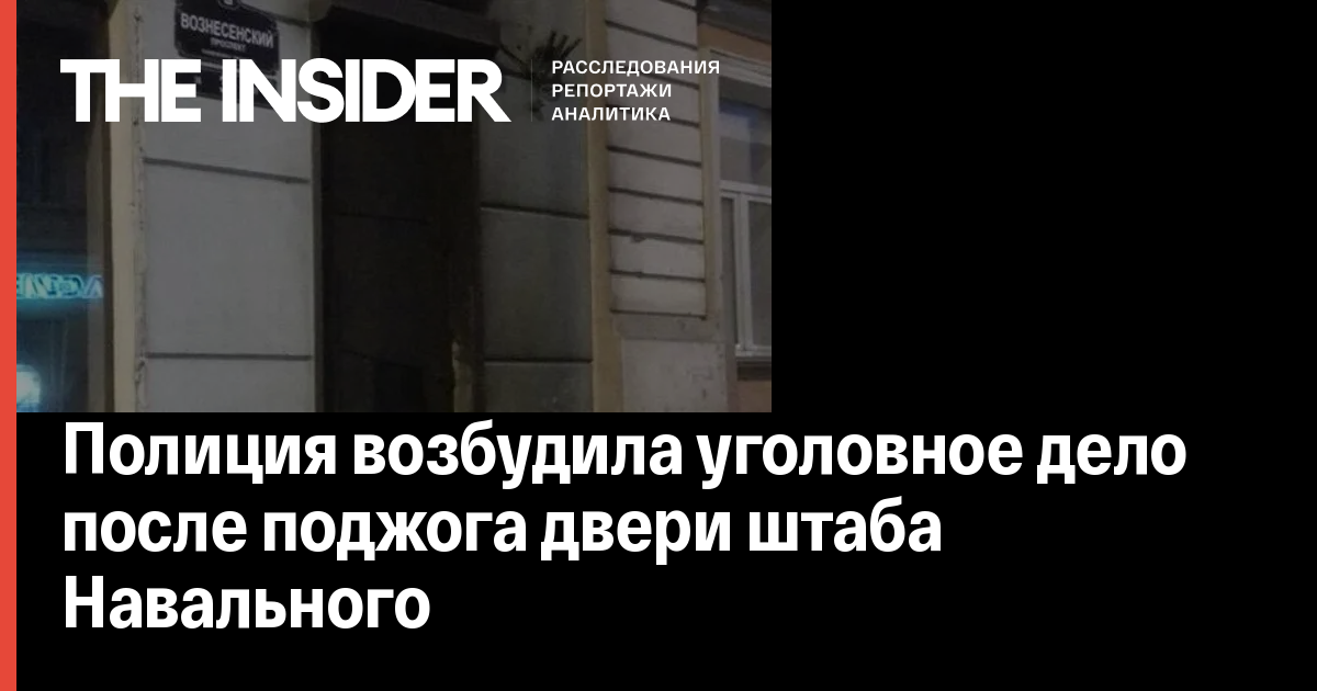 На поджигателей двери штаба Навального в Санкт-Петербурге завели дело по статье 167 УК РФ (умышленное уничтожение или повреждение имущества). . Об этом сообщает «Фонтанка».