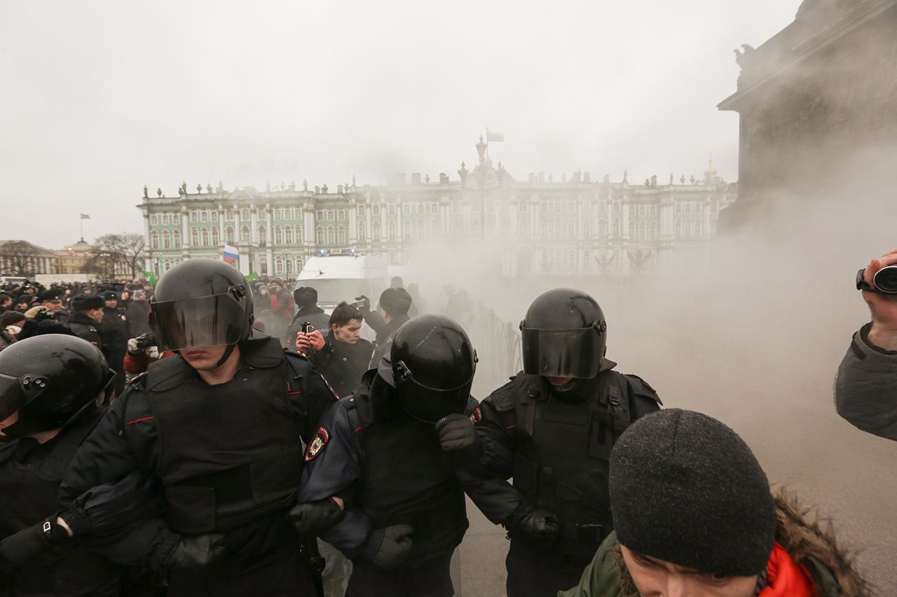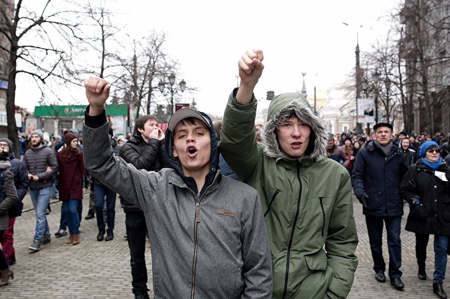 Фото: Вадим Фролов В Петербурге протестующие от места сбора на Марсовом поле почти без противодействия полиции направились на Дворцовую площадьФото: Вадим Фролов На Дворцовой площади в полицию, в частности, бросали дымовые шашки. Однако задерживать протестующих начали сильно позже — когда они пошли вверх по Невскому проспекту к площади ВосстанияФото: Ольга Мальцева / AFP / Scanpix / LETA Участники акции протеста в Петербурге. По подсчетам «Фонтанки», на улицы в городе вышли около десяти тысяч человекФото: Владислав Лоншаков / Коммерсантъ В Екатеринбурге на несогласованный митинг на площадь Труда вышли около двух тысяч человекФото: Яромир Романов / Znak.com Начавшись как митинг, акция в Екатеринбурге в итоге превратилась в шествие: ее участники дошли от площади Труда до «Ельцин-центра» и обратноФото: Яромир Романов / Znak.com Полицейские в Екатеринбурге задержали, по данным Znak.com, около десяти человек. Проходивший на той же площади Труда провластный митинг движения НОД и казаков также никак не помешал протестной акцииФото: Марат Хамматов / Tomsk.ru Томск — один из городов, где митинг был санкционированным. По данным Tomsk.ru, собралось на него более 500 человекФото: Марат Хамматов / Tomsk.ru Одним из главных героев социальных сетей 26 марта стал выступивший на митинге в Томске школьникФото: Марат Хамматов / Tomsk.ru Как и в других городах, в Томске было много плакатов разной степени изобретательностиФото: Наиль Фаттахов / Znak.com На митинг в Челябинске, по данным 31tv.ru, вышли от одной до двух тысяч человек. Как и в большинстве городов, акция была несогласованной. Митингующие собрались на Алом поле и прошли пешком по центру городаФото: Наиль Фаттахов / Znak.com По данным одного из организаторов акции в Челябинске Алексея Табалова, сотрудники полиции задержали 13 человек, трое из которых — несовершеннолетние. Был задержан и сам ТабаловФото: Николай Хижняк / Югополис Одним из самых ярких оказался митинг в Краснодаре. Здесь, по данным «Югополиса», полиция задержала более ста человек. Полиция пыталась активно препятствовать движению митингующих от Чистяковской рощи по улицам городаФото: Николай Хижняк / Югополис Также в Краснодаре в ход пошли дымовые шашки — ими, как пишет «Югополис», стали забрасывать протестующих при попытке развернуть плакатыФото: Николай Хижняк / Югополис На главной площади Краснодара рядом с припаркованными автозаками под дождем проводилось спортивное мероприятие — с десяток людей играли в настольный теннис и бадминтонФото: Юрий Мальцев / Reuters / Scanpix /LETA Во Владивостоке акция также была не санкционирована властями. Одного из ее организаторов, депутата городской думы от КПРФ Юрия Кучина задержали еще до начала митинга; на самой акции полицейские задержали около 40 человекФото: Юрий Мальцев / Reuters / Scanpix /LETA Среди прочего протестующие во Владивостоке принесли с собой вырезанную из картона ростовую фигуру Дмитрия МедведеваФото: Александр Кряжев / Sputnik / Scanpix / LETA В Новосибирске акция оказалась одной из самых массовых — на нее, по данным NGS.ru, вышли более 4 тысяч человекФото: Александр Бахтин / ТАСС / Scanpix / LETA В Кирове с разницей в два часа состоялось даже две акции: сначала пикет, а потом митингФото: Александр Бахтин / ТАСС / Scanpix / LETA По данным progorod43.ru, на митинге в Кирове присутствовали около 300 человекФото: Роман Яровицын / Коммерсантъ В Нижнем Новгороде, по данн