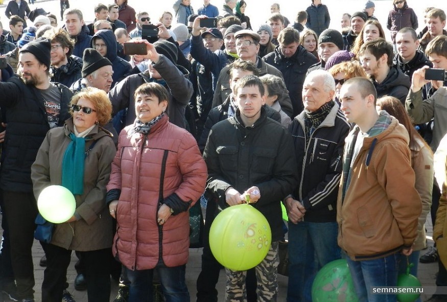 Большинство пришедших на площадь — молодые люди 20–30 лет, многие из них увидели объявление об акции в интернете. Студенты и школьники держали в руках воздушные шары зеленого цвета в знак солидарности с облитым зеленкой Алексеем Навальным.