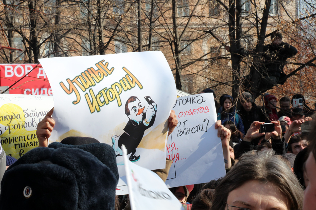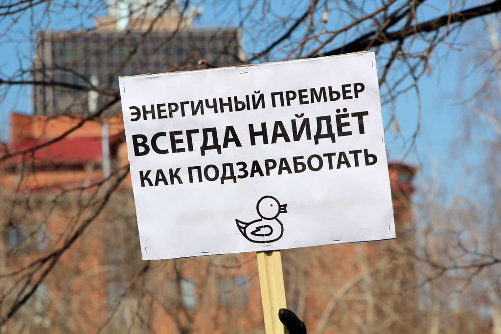 Теперь можно было доставать плакаты. «Димон, из правительства вон», «Коррупция ворует будущее», «Продай дачи, построй дороги», значилось на них. Участники принесли множество желтых уточек: резиновых и пластмассовых. Кто-то пытался включить с телефона «Танец маленьких утят».