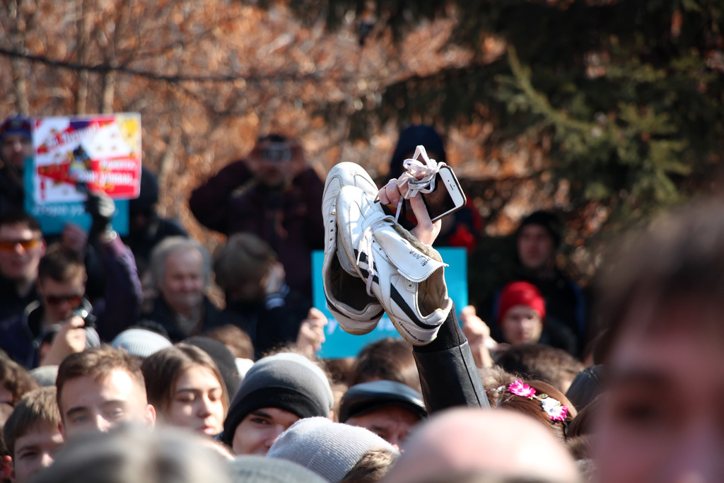 Следом выступили руководители региональных отделений «Яблока» и незарегистрированной Партии прогресса Светлана Каверзина и Андрей Гладченко. Первая подчеркнула, что вне зависимости от политических предпочтений и отношения к Навальному, новосибирцы вышли протестовать против коррупции. Второй отметил, что «коррупция — это не только Димон».