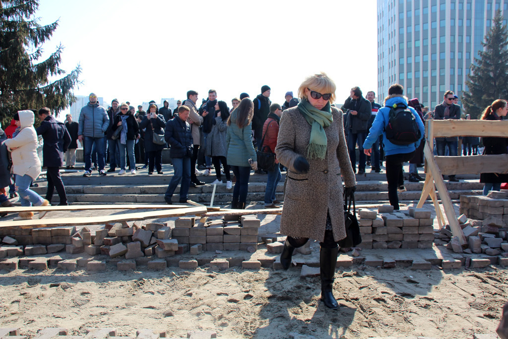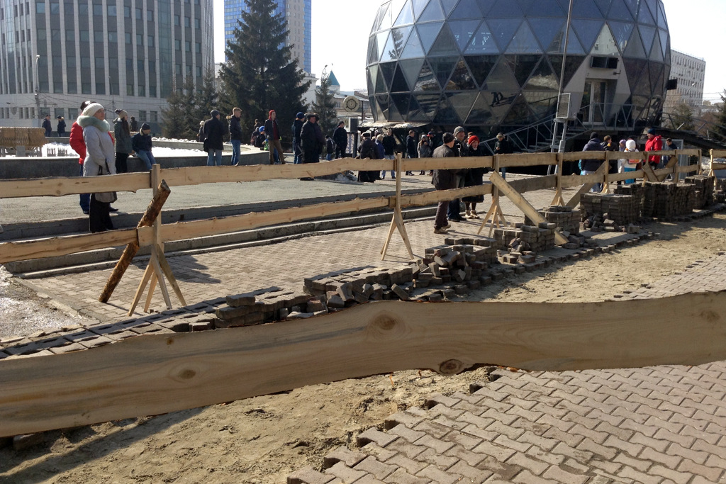 За час до мероприятия площадь перед театром «Глобус», право протестовать на которой организаторы отсудили у мэрии, была ограждена деревянными лесами. Конструкции стояли по обе стороны от памятника Владимиру Высоцкому. Часть плитки, из-за ремонта которой власти изначально отказали, действительно оказалась выломана и валялась рядом.