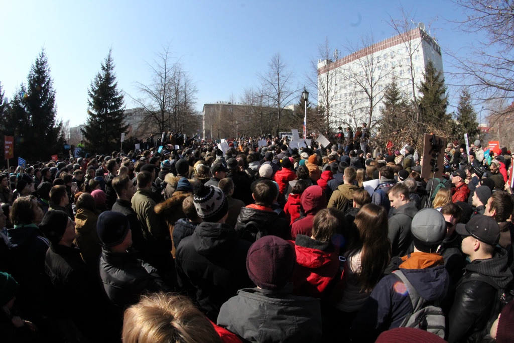 Новосибирцы вышли на митинг против коррупции в России. Власти выделили им аллею 100 на 2,5 метра. На акции, по разным оценкам, собрались от 1,5 до 2 тыс. человек и Алексей Навальный – по телефону. Репортаж Тайги.инфо.