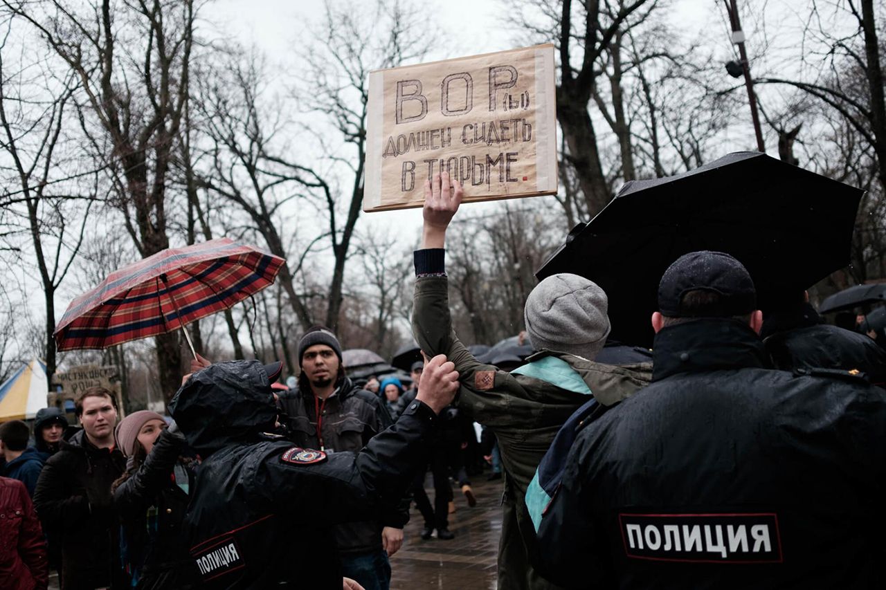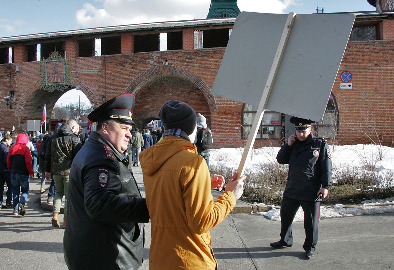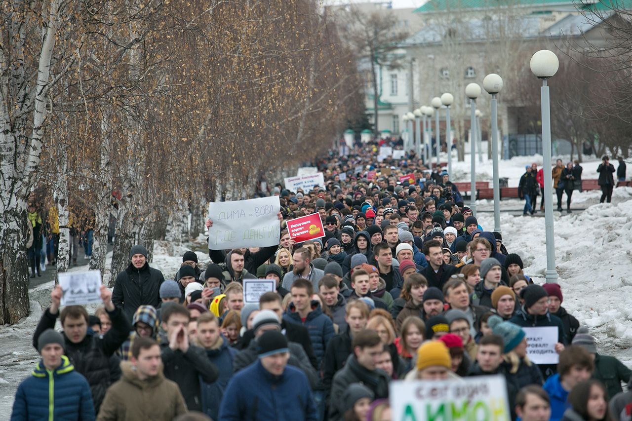 Фото: Вадим Фролов В Петербурге протестующие от места сбора на Марсовом поле почти без противодействия полиции направились на Дворцовую площадьФото: Вадим Фролов На Дворцовой площади в полицию, в частности, бросали дымовые шашки. Однако задерживать протестующих начали сильно позже — когда они пошли вверх по Невскому проспекту к площади ВосстанияФото: Ольга Мальцева / AFP / Scanpix / LETA Участники акции протеста в Петербурге. По подсчетам «Фонтанки», на улицы в городе вышли около десяти тысяч человекФото: Владислав Лоншаков / Коммерсантъ В Екатеринбурге на несогласованный митинг на площадь Труда вышли около двух тысяч человекФото: Яромир Романов / Znak.com Начавшись как митинг, акция в Екатеринбурге в итоге превратилась в шествие: ее участники дошли от площади Труда до «Ельцин-центра» и обратноФото: Яромир Романов / Znak.com Полицейские в Екатеринбурге задержали, по данным Znak.com, около десяти человек. Проходивший на той же площади Труда провластный митинг движения НОД и казаков также никак не помешал протестной акцииФото: Марат Хамматов / Tomsk.ru Томск — один из городов, где митинг был санкционированным. По данным Tomsk.ru, собралось на него более 500 человекФото: Марат Хамматов / Tomsk.ru Одним из главных героев социальных сетей 26 марта стал выступивший на митинге в Томске школьникФото: Марат Хамматов / Tomsk.ru Как и в других городах, в Томске было много плакатов разной степени изобретательностиФото: Наиль Фаттахов / Znak.com На митинг в Челябинске, по данным 31tv.ru, вышли от одной до двух тысяч человек. Как и в большинстве городов, акция была несогласованной. Митингующие собрались на Алом поле и прошли пешком по центру городаФото: Наиль Фаттахов / Znak.com По данным одного из организаторов акции в Челябинске Алексея Табалова, сотрудники полиции задержали 13 человек, трое из которых — несовершеннолетние. Был задержан и сам ТабаловФото: Николай Хижняк / Югополис Одним из самых ярких оказался митинг в Краснодаре. Здесь, по данным «Югополиса», полиция задержала более ста человек. Полиция пыталась активно препятствовать движению митингующих от Чистяковской рощи по улицам городаФото: Николай Хижняк / Югополис Также в Краснодаре в ход пошли дымовые шашки — ими, как пишет «Югополис», стали забрасывать протестующих при попытке развернуть плакатыФото: Николай Хижняк / Югополис На главной площади Краснодара рядом с припаркованными автозаками под дождем проводилось спортивное мероприятие — с десяток людей играли в настольный теннис и бадминтонФото: Юрий Мальцев / Reuters / Scanpix /LETA Во Владивостоке акция также была не санкционирована властями. Одного из ее организаторов, депутата городской думы от КПРФ Юрия Кучина задержали еще до начала митинга; на самой акции полицейские задержали около 40 человекФото: Юрий Мальцев / Reuters / Scanpix /LETA Среди прочего протестующие во Владивостоке принесли с собой вырезанную из картона ростовую фигуру Дмитрия МедведеваФото: Александр Кряжев / Sputnik / Scanpix / LETA В Новосибирске акция оказалась одной из самых массовых — на нее, по данным NGS.ru, вышли более 4 тысяч человекФото: Александр Бахтин / ТАСС / Scanpix / LETA В Кирове с разницей в два часа состоялось даже две акции: сначала пикет, а потом митингФото: Александр Бахтин / ТАСС / Scanpix / LETA По данным progorod43.ru, на митинге в Кирове присутствовали около 300 человекФото: Роман Яровицын / Коммерсантъ В Нижнем Новгороде, по данн