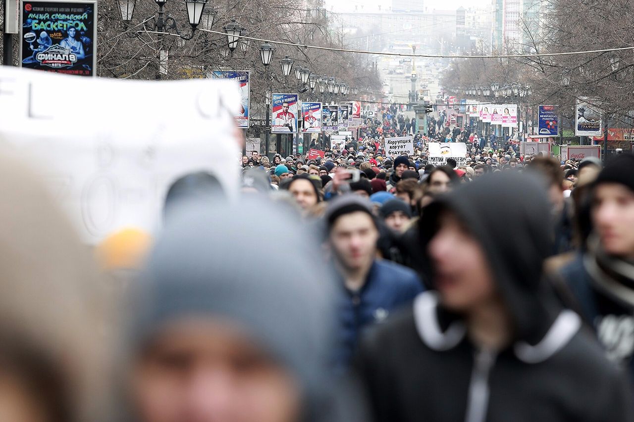 26 марта по всей России прошла акция против коррупции, поводом для которой стало расследование Фонда борьбы с коррупции о премьер-министре Дмитрии Медведеве. На улицы вышли тысячи людей (а в Москве, судя по всему, больше десяти тысяч); сотни из них были задержаны полицией (большинство — опять же, в Москве). Одна из главных особенностей сегодняшних митингов — то, насколько массовыми они получились в регионах. «Медуза» показывает, как антикоррупционные акции выглядели во Владивостоке, Новосибирске, Кирове, Екатеринбурге, Челябинске — и во многих других городах.