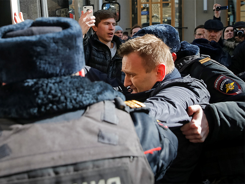 Навальный был задержан вскоре после того, как присоединился к антикоррупционной "прогулке". По словам его пресс-секретаря Киры Ярмыш, политику придется провести ночь в отделении полиции, а в понедельник состоится суд по вменяемым ему административным нарушениям.