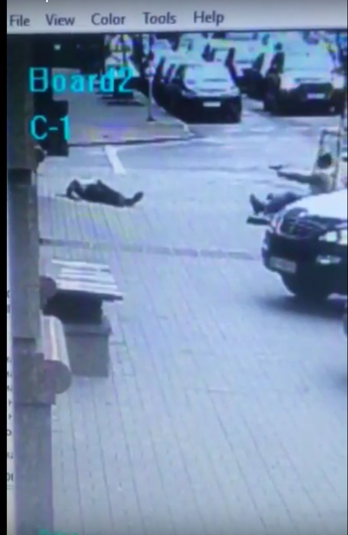 23 марта, центр Киева. На видеозаписи, опубликованной «РБК-Украина», видно, как убийца в серой толстовке с капюшоном, жилете и в красных кроссовках идет за Денисом Вороненковым (он в темном костюме справа) и его охранником. Киллер окликает Вороненкова, тот оборачивается — Воронеков был убит на месте, его охранник, сотрудник СБУ Украины, ранен в живот, но сумел выстрелить в убийцу — тот позже скончается в больнице.Мария Максакова увидит лежащего на асфальте мужа и потеряет сознание…