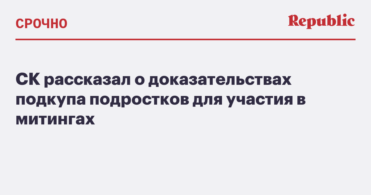 СК рассказал о доказательствах подкупа подростков для участия в митингах