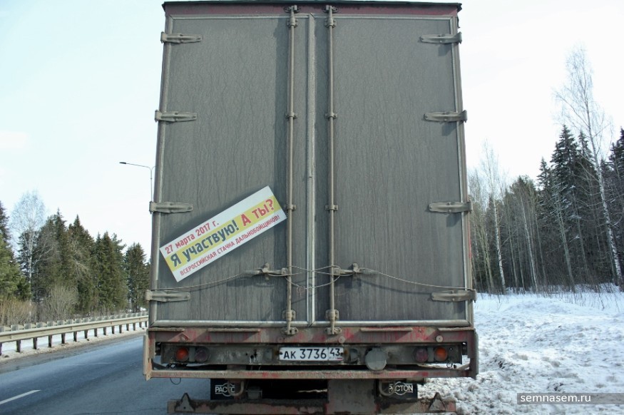 В Кирове 27 марта члены Союза грузоперевозчиков «Вятка» присоединились ко всероссийской стачке дальнобойщиков, которые протестуют против системы «Платон». Они провели автопробег по улицам города.