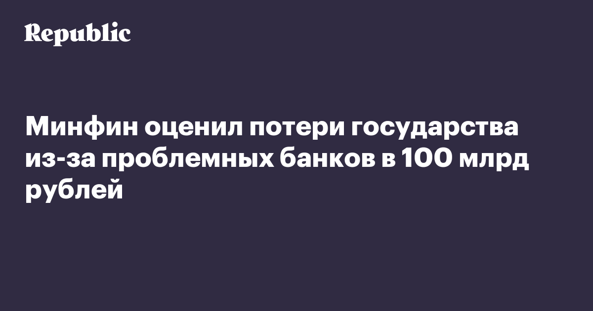 Минфин оценил потери государства из-за проблемных банков в 100 млрд рублей