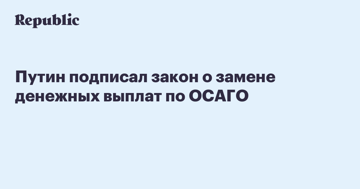 Путин подписал закон о замене денежных выплат по ОСАГО