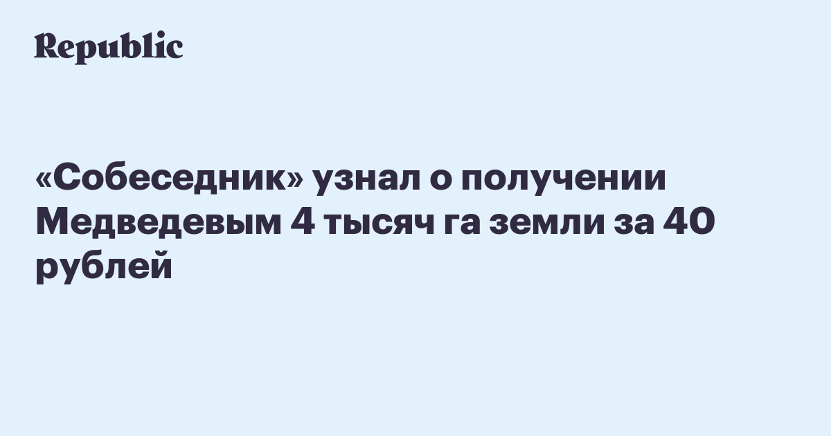 «Собеседник» узнал о получении Медведевым 4 тысяч га земли за 40 рублей