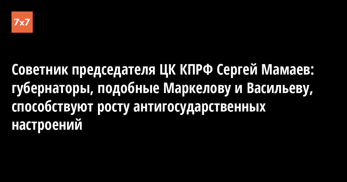 Советник председателя ЦК КПРФ Сергей Мамаев: губернаторы, подобные Маркелову и Васильеву, способствуют росту антигосударственных настроений