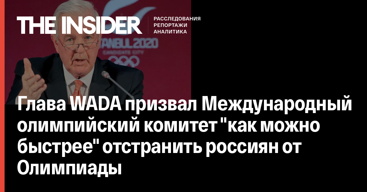 Глава WADA призвал Международный олимпийский комитет "как можно быстрее" отстранить россиян от Олимпиады