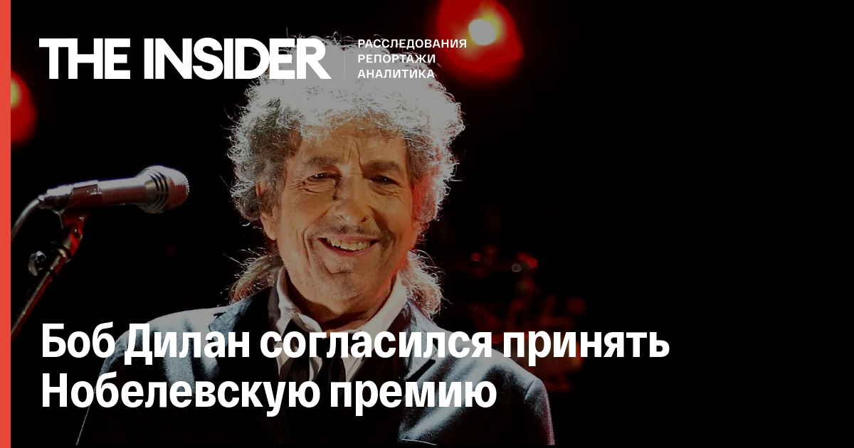 Американский певец Боб Дилан согласился принять Нобелевскую премию по литературе. Об этом сообщает «Би-би-си» со ссылкой на Шведскую академию.