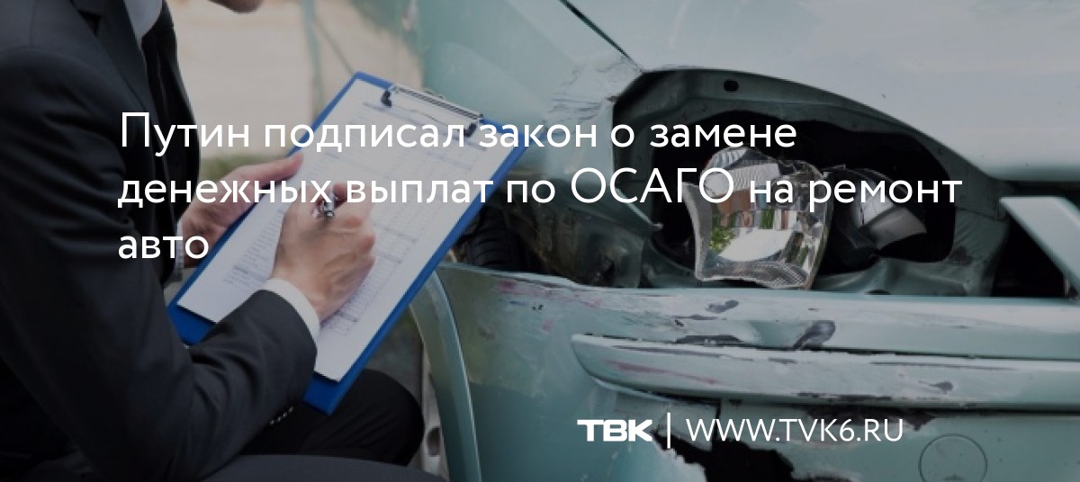 Путин подписал закон о замене денежных выплат по ОСАГО на ремонт авто