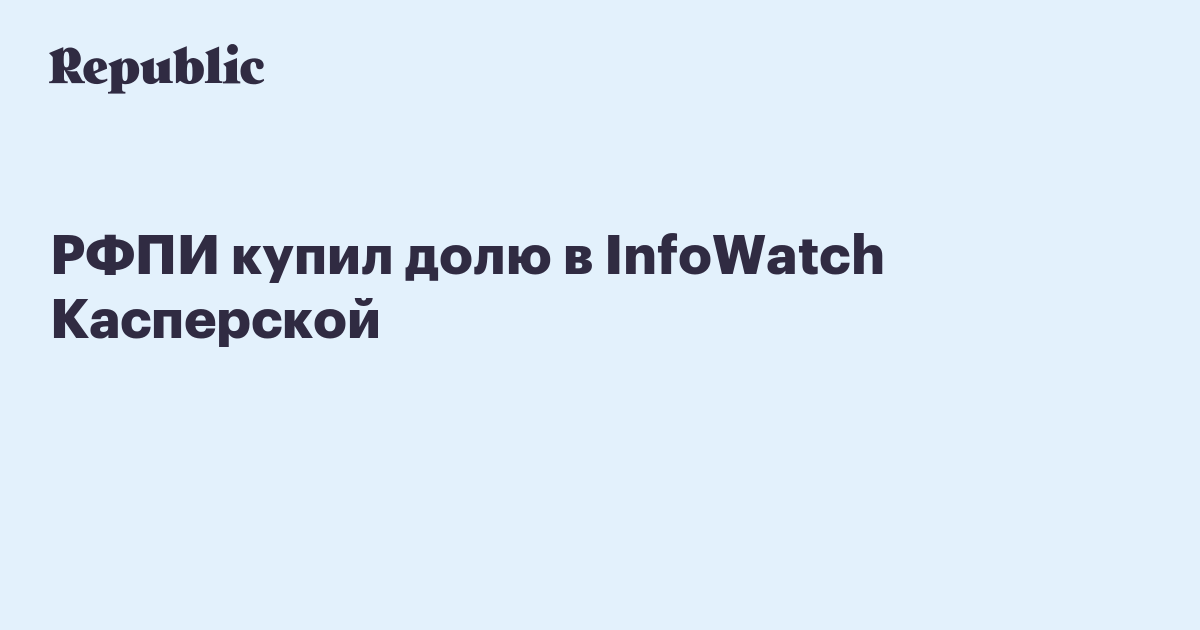 Российский фонд прямых инвестиций (РФПИ) стал инвестором холдинга InfoWatch Натальи Касперской, пишут «Ведомости» со ссылкой на близкие к сделке источники и представителей компании.