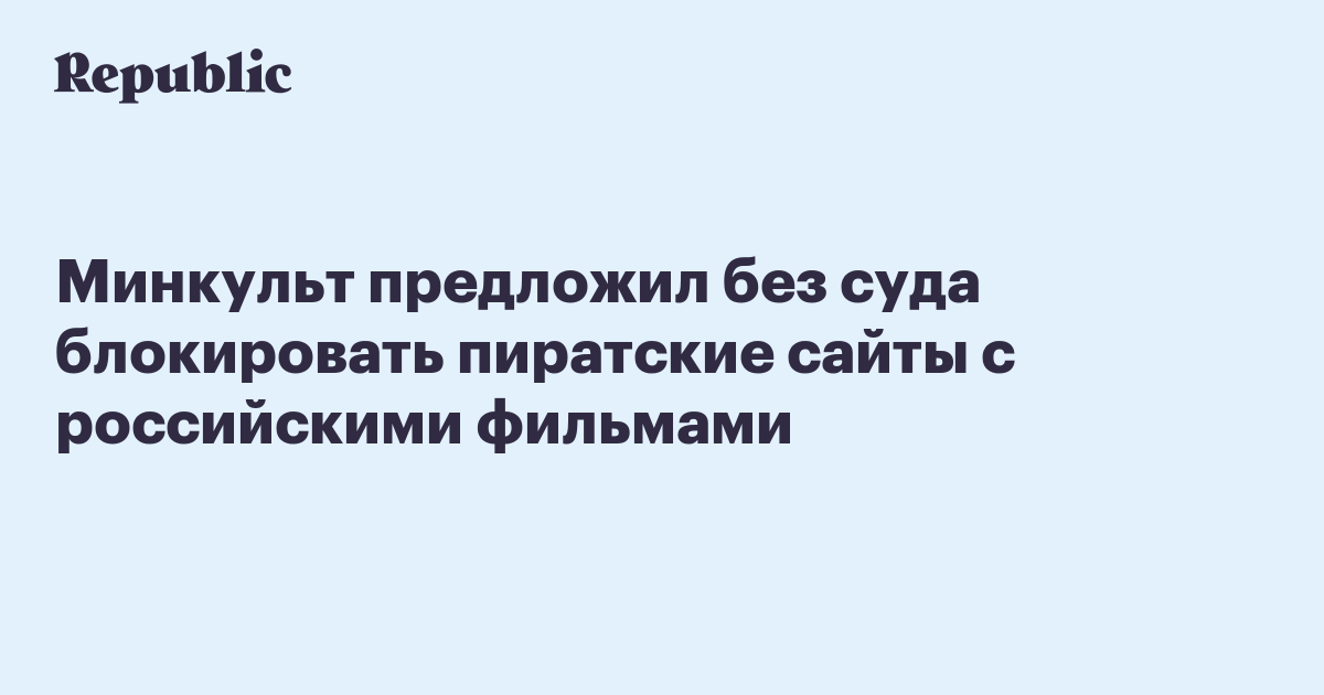 В Министерстве культуры РФ предложили внести поправки в законопроект о «зеркалах», предусматривающие возможность без суда блокировать пиратские сайты с российскими фильмами. Об этом высокопоставленный чиновник Минкульта рассказал «Коммерсанту».