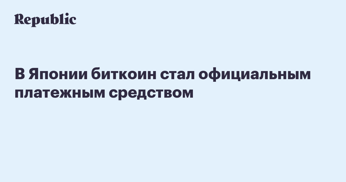 Япония признала биткоин официальным платежным средством, закон вступает в силу 1 апреля 2017 года, сообщает Coindesk.