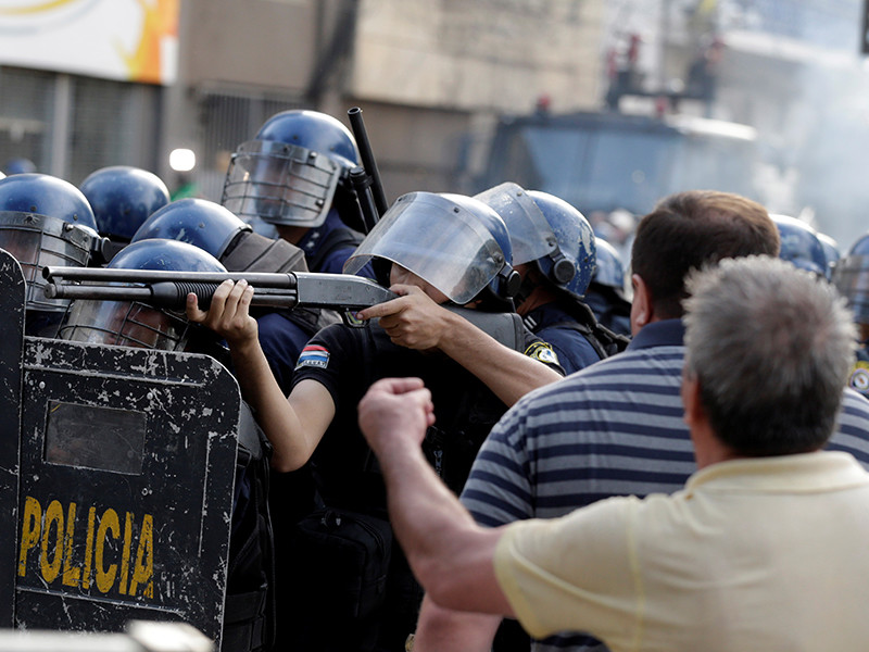 Протесты в Парагвае начались еще в середине недели, когда позволяющий переизбрание главы государства указ начал обсуждаться законодателями. До пятницы, впрочем, все эти акции проходили мирно, а полиция ограничивалась лишь охраной административных зданий.