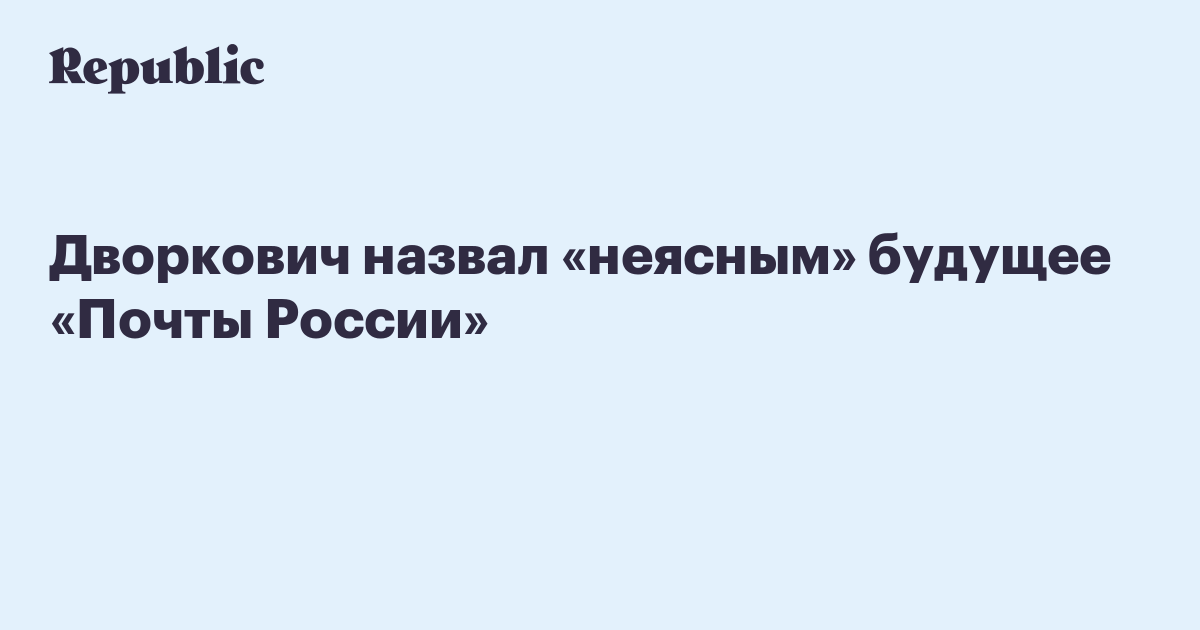 «Будущее “Почты России” пока не ясно, есть развилки, есть варианты, в какую сторону ей идти. Вполне возможно, что она станет еще одной розничной сетью, а может быть она станет чем-то другим, может, станет финансовой инфраструктурой», – сказал Дворкович.