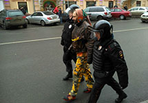 В ОВД остается активист Альберт Гончаров, задержанный днем в метро за раздачу брошюр "Путин. Война". Его обвиняют в нарушении миграционного законодательства (статья 18.8 КоАП), так как он является гражданином Белоруссии.