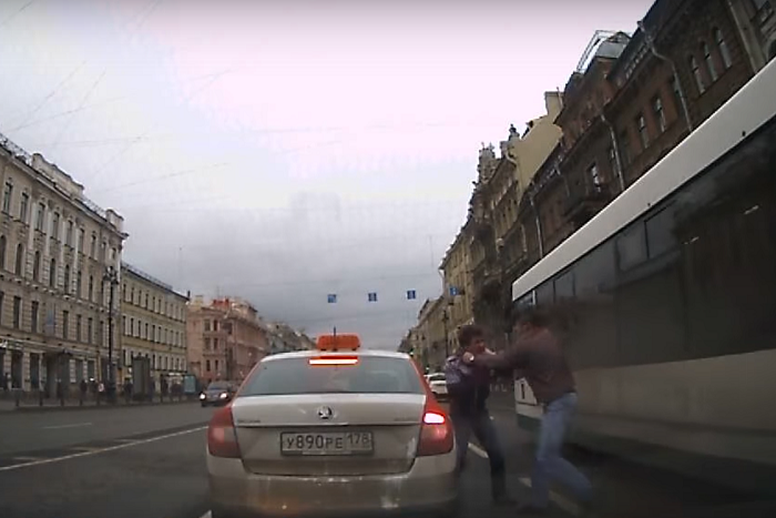 Пользователи паблика «ДТП и ЧП | Санкт-Петербург» сообщают, что в воскресенье вечером на Невском проспекте прямо на проезжей части произошла драка. По словам очевидцев, один из участников потасовки — водитель такси.