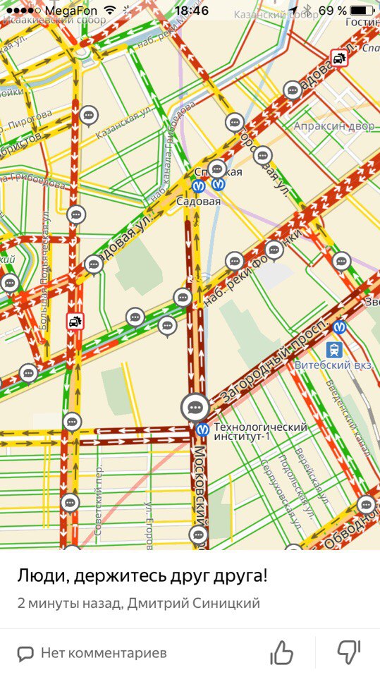 Кроме того, петербуржцы создали Telegram-чат, где обмениваются информацией о ситуации на дорогах и предлагают подвезти друг друга.