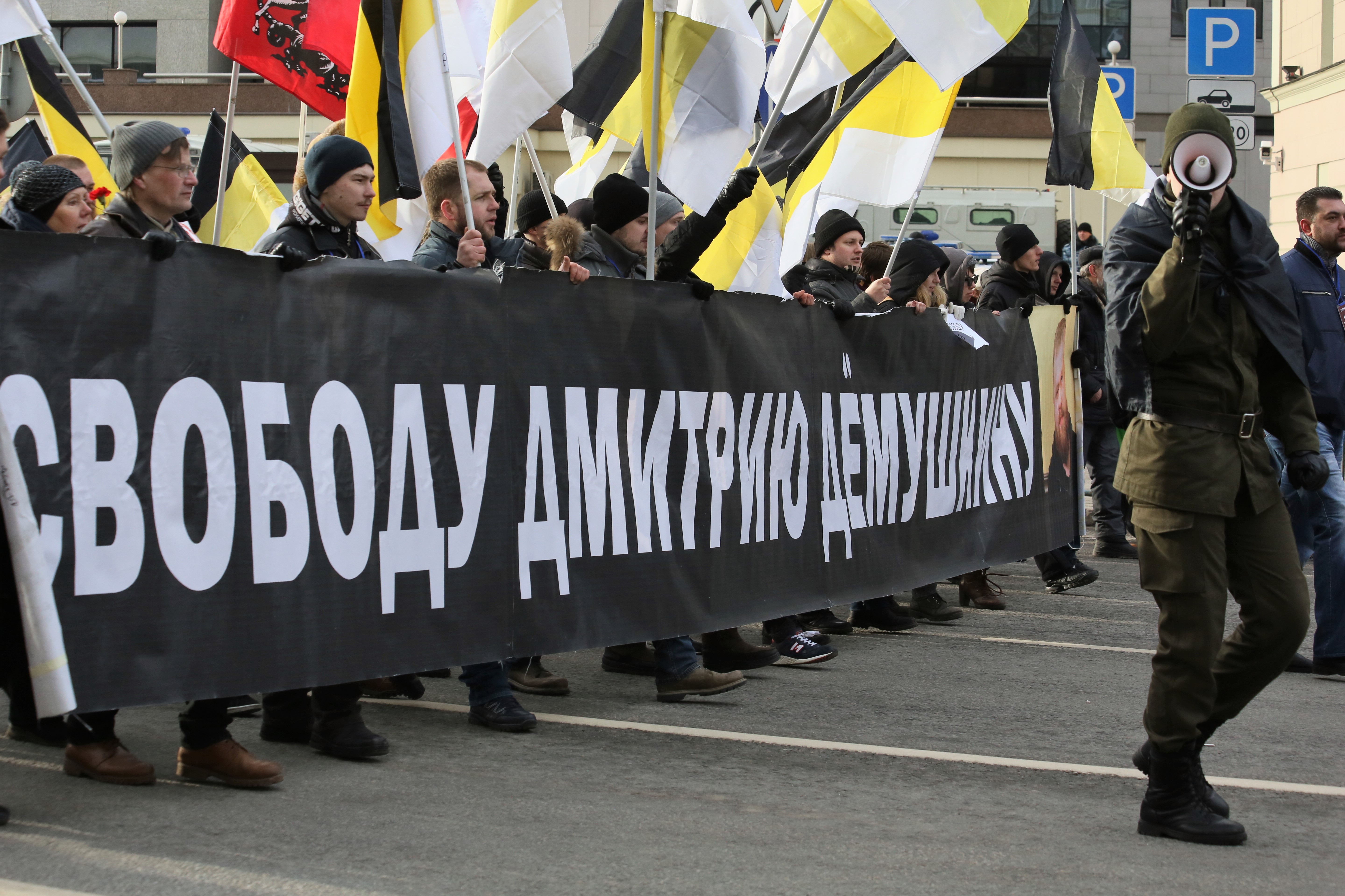 "Я знаю людей, которые подсунули авантюру с Украиной. Они убедили, что Одесса, Харьков, Николаев – все это наше, мы поднимем флаг, и все донецкие встанут. Никто в итоге не встал", – говорил в январе 2016 года в интервью Радио Свобода лидер националистов Дмитрий Демушкин. Он убежден, что его несговорчивость стала причиной кампании репрессий, которые обрушились на его движение "Русские": в октябре 2015 года оно было признано экстремистским и запрещено. Демушкина неоднократно задерживали, но пока он находится под домашним арестом. Его обвиняют в том, что он разместил в соцсетях фотографии с "Русского марша", на которых запечатлены, как решили эксперты из Чувашии, экстремистские лозунги, а стало быть, совершил действия, направленные на возбуждение ненависти и вражды к нерусским.