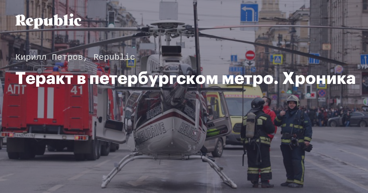 «Станции Технологический институт и Сенная площадь закрыты на вход и выход. Поезда следуют без остановки. Происходит эвакуация пассажиров со станций, есть пострадавшие. Предположительно, в вагоне произошел взрыв неустановленного предмета», – официальное сообщение от пресс-службы метро.