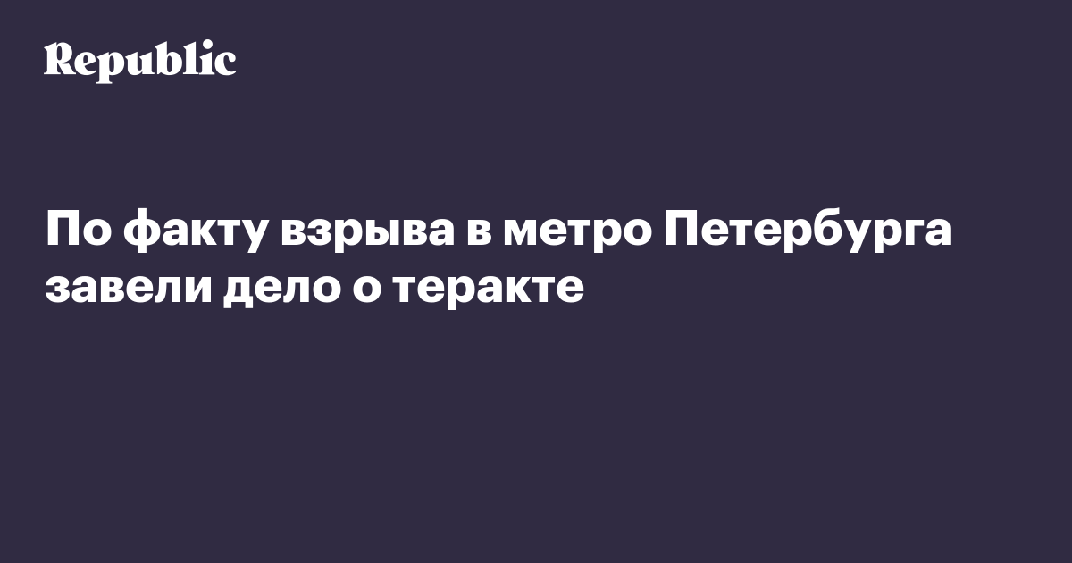 Следственный комитет квалифицировал взрыв в петербургском метро как теракт. Об этом сообщает «Коммерсант».