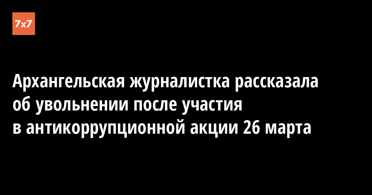 Журналистка издания «Архангельск ― город воинской славы» Мария Гаврилова уволилась из СМИ по собственному желанию из-за претензий руководства к тому, что она публиковала в своем аккаунте в социальной сети видео с антикоррупционной акции. Об этом 1 апреля Гаврилова написала на своей странице «ВКонтакте».