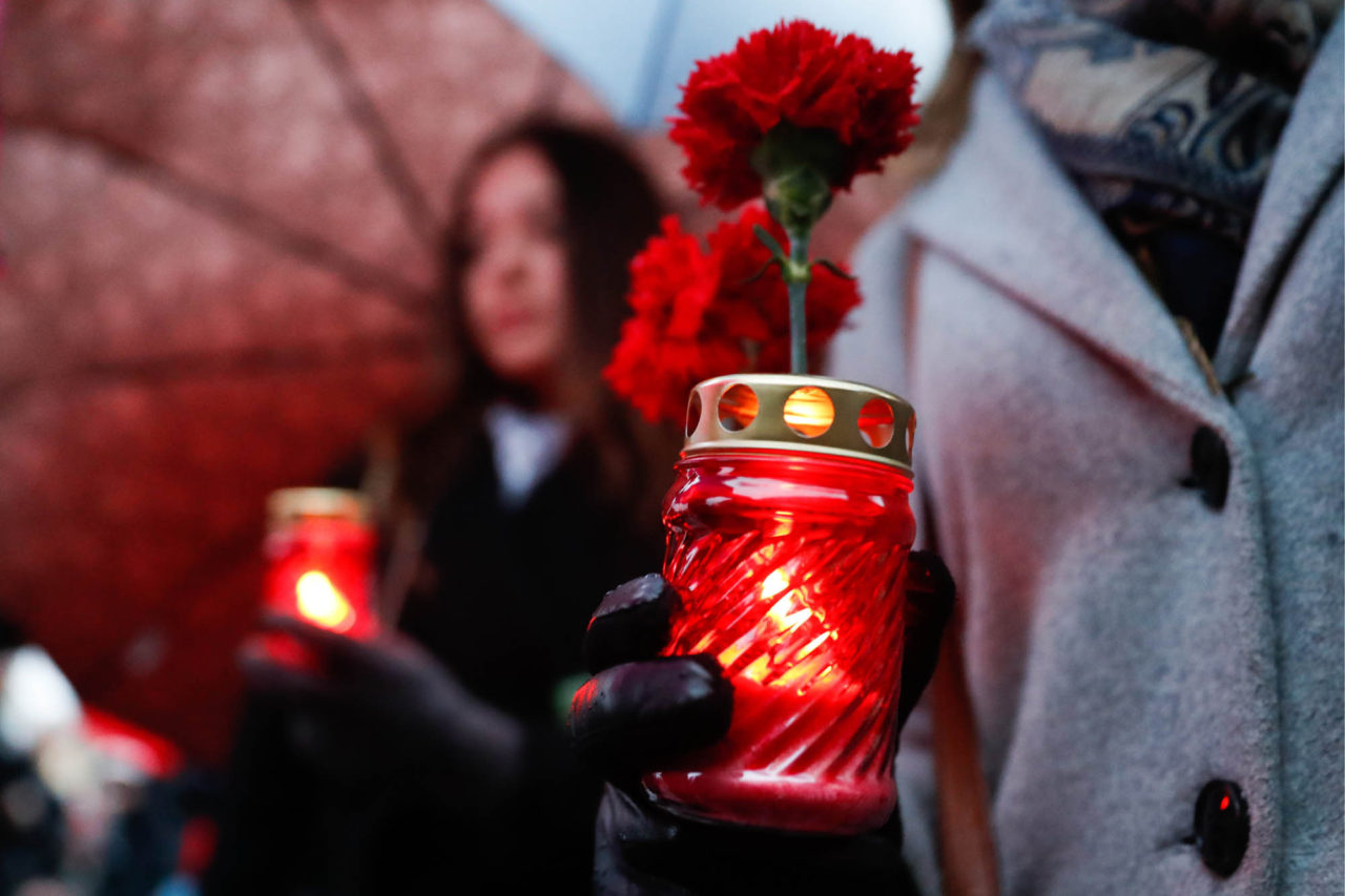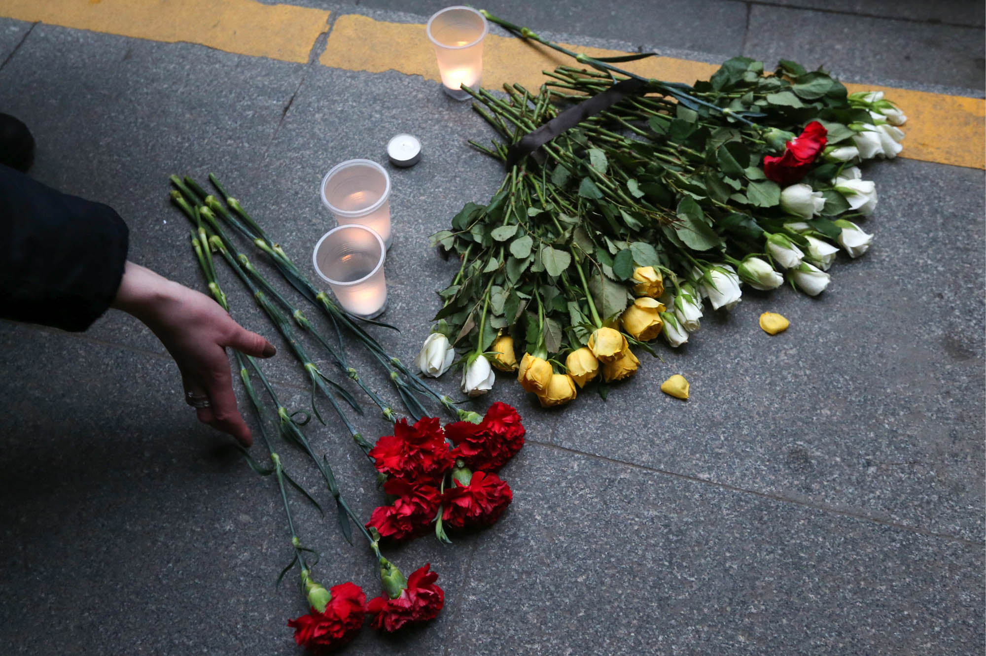 Цветы и свечи у станции метро «Сенная площадь»