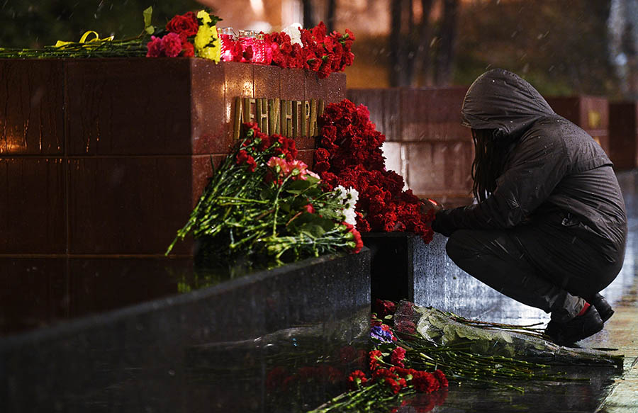 Фото: Артем Геодакян/ТАСС Жители Петербурга несут цветы и свечи к станции метро «Сенная», где днем произошел взрыв, унесший жизни как минимум десяти человек. Москвичи тоже возлагают цветы — к мемориалу Ленинграда в Александровском саду