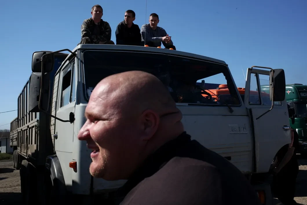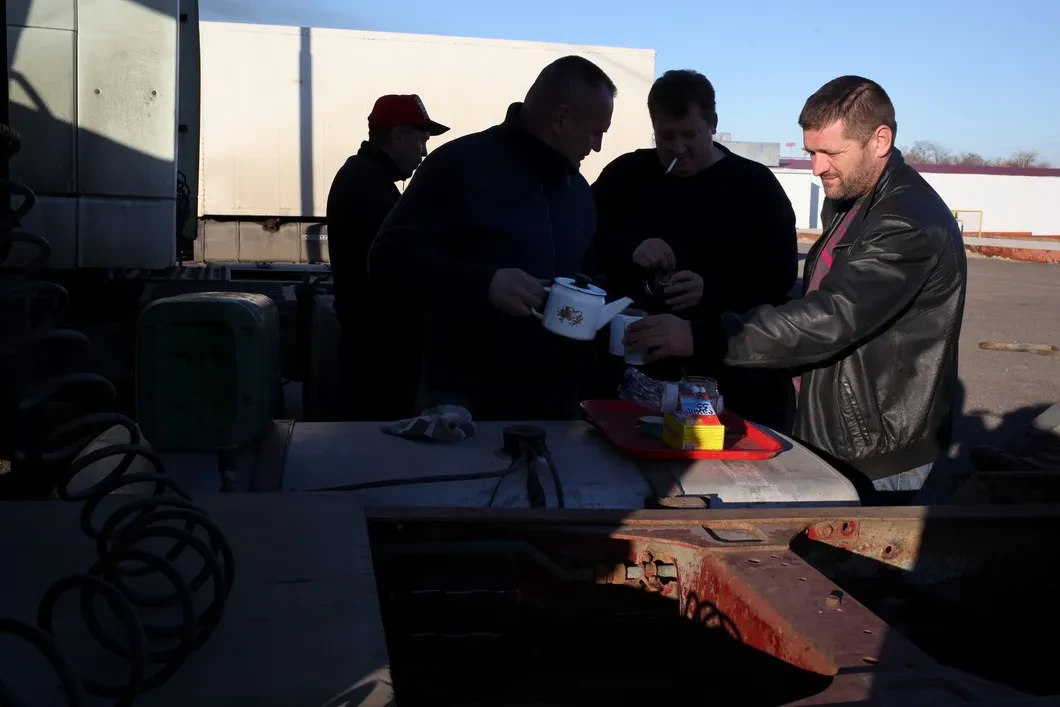 «Смотри — вон типичный дальнобойщик пошел в галстуке», — говорит мне Юра. Он — замруководителя одной из фирм грузоперевозок и рассказывает мне про то, что полиции выгодно, чтобы дальнобойщики не бастовали.
