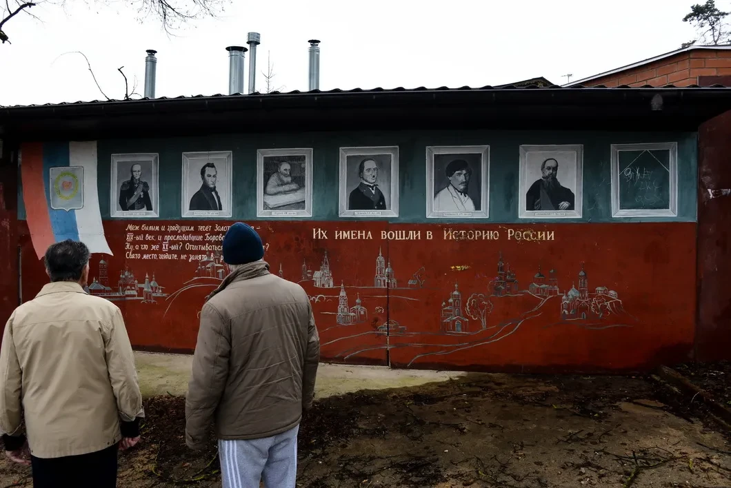 Надо сказать, Овчинников в Боровске человек очень заметный. Он определяет не только городскую общественную жизнь, но и сам внешний вид города. Как? А расписывает по собственной инициативе заборы и стены домов, естественно, получив согласие домовладельцев. Вот только когда в его настенной живописи появляется мотив репрессий, эти картины планомерно закрашивают, якобы по требованию жильцов. А он продолжает свой бескорыстный труд. И верит, что труд этот не Сизифов. Как и «пробивание» памятника.