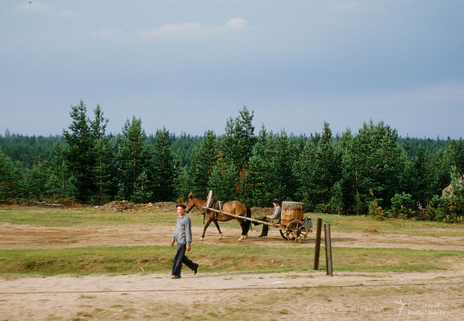 Сайт «Настоящее время» опубликовал третью часть архива американского военного Мартина Манхоффа, который в 1952–1954 годы работал в посольстве США в Москве (вот первая и вторая части). Фотографии и киносъемки из новой публикации были сделаны во время его поездок по СССР в 1953-м и 1954 году — как пишет «Настоящее время», тогда были сняты ограничения на поездки по стране иностранцев. «Настоящее время» предоставило «Медузе» две фотографии из архива; где именно были сделаны снимки, неизвестно.