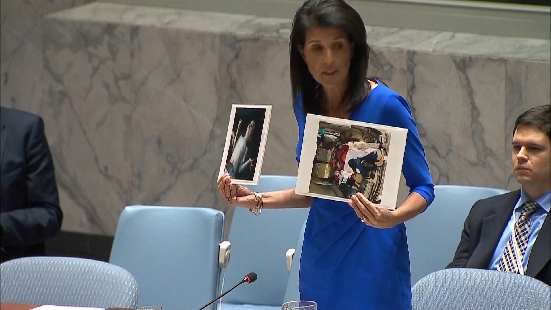 Nikki Haley condemns the Syria chemical attack at UN Security Council emergency meetinghttps://t.co/YbHqlKwDZR pic.twitter.com/hWDbdim1ca