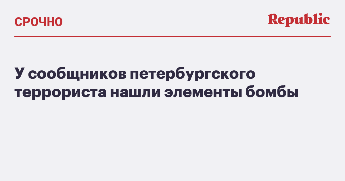 У предполагаемых сообщников петербургского террориста Акбаржона Джалилова нашли элементы взрывчатки, аналогичные взорванной в метро бомбе. Об этом сообщает «Интерфакс» со ссылкой на источник.