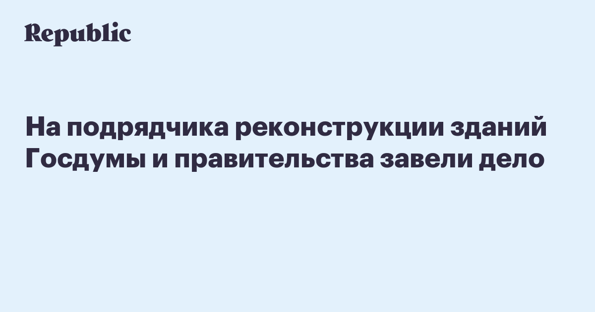 На подрядчика реконструкции зданий Госдумы и правительства завели дело