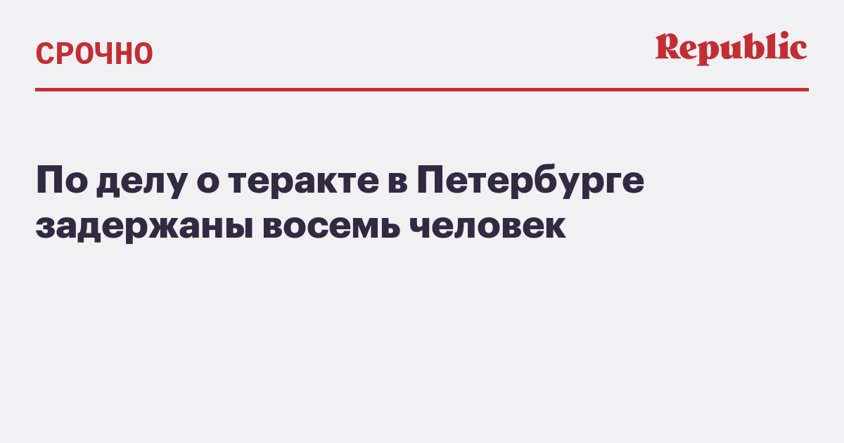 По делу о взрыве в метрополитене Санкт-Петербурга задержаны восемь человек. Об этом говорится в сообщении Следственного комитета РФ.
