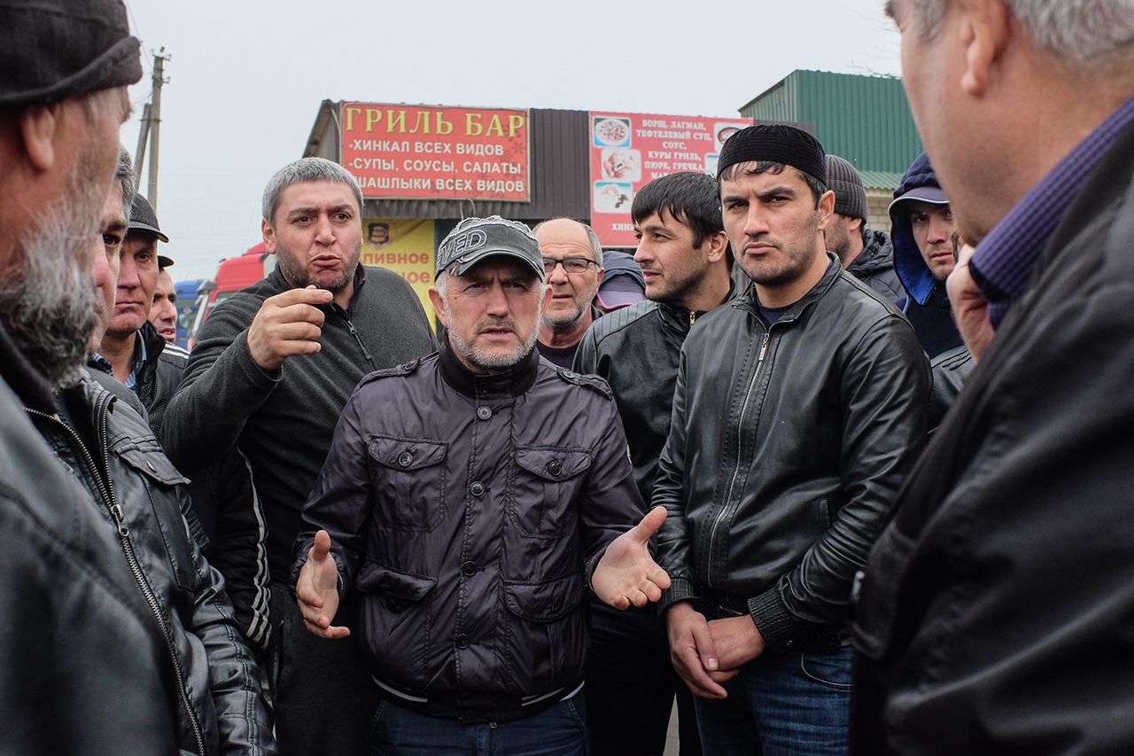 «Мы — единственные, кто выигрывает от этого всего», — говорит пожилая хозяйка дагестанского кафе «Гламур» Фатима и смеется. Целый день она сидит на зеленом пластиковом стуле и наблюдает за самым массовым и долгосрочным протестом в последние годы. Перед ней — федеральная трасса «Кавказ», ведущая из Москвы в Баку — и далее в Иран. По дороге ездят легковые машины. Редко, где-то раз в час, проезжает небольшая колонна грузовых автомобилей с азербайджанскими номерами из других регионов; ее непременно сопровождает полицейский автомобиль. «Чер-ти! Чер-ти!» — кричат им с обочины местные дальнобойщики, от которых полиция охраняет их же коллег.