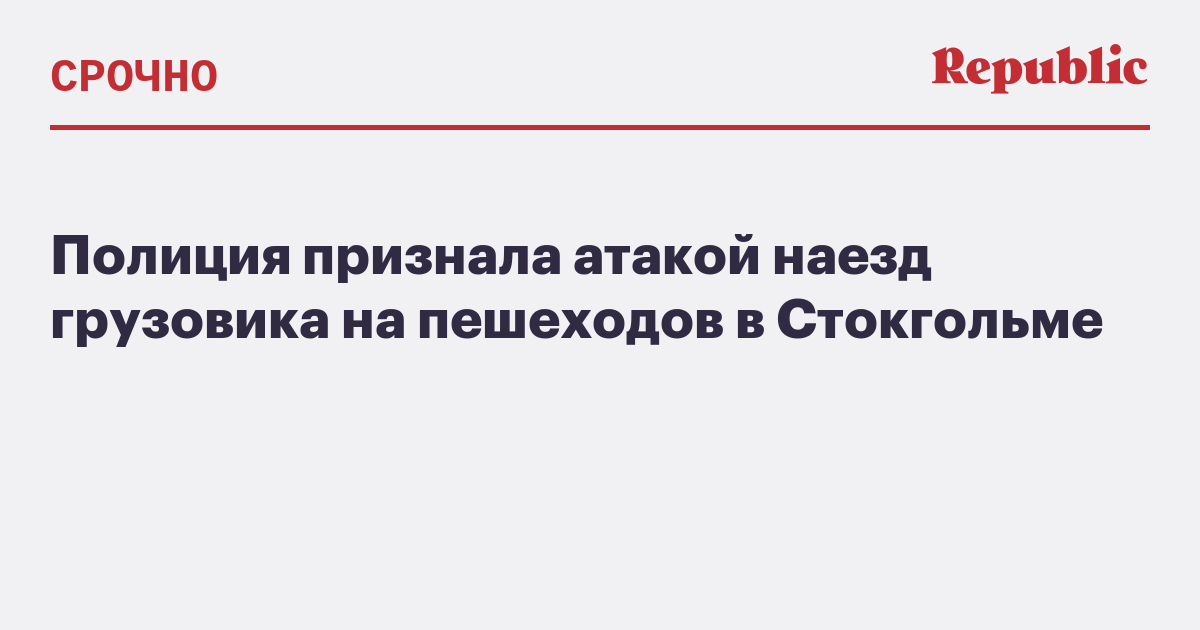 Полиция признала атакой наезд грузовика на пешеходов в Стокгольме